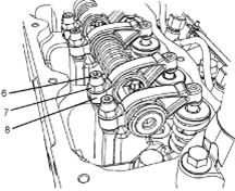6松開(kāi)所有搖臂(8)上的螺母(7)。擰松所有搖臂(8)上的調節器(6),直到所有氣門(mén)完全閉合。