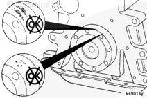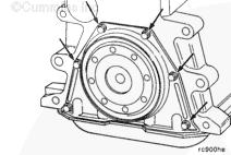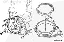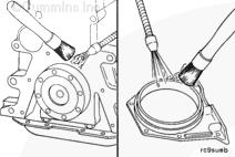 曲軸后油封安裝在殼體上,該殼體通過(guò)螺栓安裝在缸體后部。使用雙層 Teflon™ 密封件。曲軸密封面必須清潔并且在安裝油封時(shí)沒(méi)有機油。