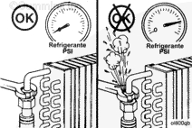 不要從熱發(fā)動(dòng)機上打開(kāi)散熱器壓力蓋。應等冷卻液溫度降至 50°C [120°F] 以下時(shí)才能拆下壓力蓋。否則高溫冷卻液或蒸汽噴出可能會(huì )造成人身傷害。 |