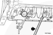 拆卸易接近的檢修孔蓋。 穿過(guò)檢修孔蓋開(kāi)口在曲柄板上使用撬棍可以前后移動(dòng)曲軸。通過(guò)曲軸配重或前減振器上的檢修孔蓋開(kāi)口可以測量軸向間隙。
