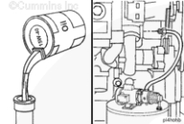 排放康明斯發(fā)動(dòng)機冷卻液。參考第 8 節中的步驟 008-018(冷卻系統)。