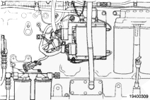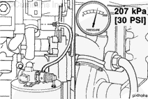 使用一臺能夠連續提供205 kPa [30 psi]壓力的壓力泵。將泵連接至發(fā)動(dòng)機機油濾清器座的前部。