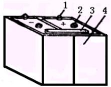 酸性蓄電池主要由容器、極板、隔板三部分構成,其外形結構如圖所示。