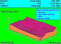 發(fā)動(dòng)機的ECM內有多個(gè)三維圖譜. 如圖所示,當各個(gè)輸入信號的參數值確定后,在這種工況下的發(fā)動(dòng)機的正時(shí)也就確定了.