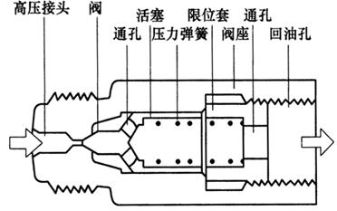 1 – 出油閥 2 – 密封件 3 – 調壓閥 4 – 球閥 5 – 安全閥 6 – 低壓油路 7 – 驅動(dòng)軸 8 – 偏心凸輪 9 – 柱塞泵油元件 10 – 柱塞腔 11 – 進(jìn)油閥 12 – 柱塞單向閥