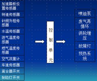 1. 燃油噴射控制 2. 怠速控制 3. 進(jìn)氣控制 4. 增壓控制 5. 排放控制 6. 起動(dòng)控制7. 巡航控制 8. 故障自診斷和失效保護9. 柴油機與自動(dòng)變速器的綜合控制