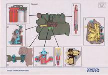 1. 能量轉換和發(fā)動(dòng)機省油冷卻損失 排氣損失 摩擦損失 效率:柴油機效率約43--44%,汽油機約30%。早期柴油機效率只有2%--5%. 省油措施:提高冷卻水溫、利用排氣能量、盡量使燃燒充分、運行于部分負載(約70%左右)等。 發(fā)電用發(fā)動(dòng)機的工況劃分 兩種工況極其區別 長(cháng)行主電站功率 額定功率符合ISO連續運行的標準, 適合于在不同載荷下, 持續提供動(dòng)力.具有10%的過(guò)載能力. 最大備用電站功率 功率符合ISO標準, 可在不同載荷下持續供電, 適合在電力設備良好的地區出現故障時(shí)使用.不允許有過(guò)載. 二. 發(fā)動(dòng)機基本組成 往復式活塞式發(fā)動(dòng)機由以下幾部分組成: 固定部件 機體、主軸承、缸套、缸蓋、飛輪殼、油地殼、機腳 運動(dòng)部件 活塞、連桿、曲軸、飛輪、傳動(dòng)齒輪 換氣系統 凸輪軸、頂柱、挺桿、搖臂、閥橋、進(jìn)排氣閥、空氣濾器 燃油系統 噴油泵、噴油器、輸油泵、高壓油管、調速器、燃油濾器 潤滑系統 潤滑油泵、安全閥、定壓閥、減壓閥、活塞冷卻油閥、量油尺、濾器 冷卻系統 散熱器、中冷器、膨脹水箱、風(fēng)扇、節溫器 電氣/電子控制和報警檢測系統 起動(dòng)馬達、充電發(fā)電機、停車(chē)電磁閥、電子模塊、接線(xiàn)/控制箱、儀表或顯示器 固定部件– 機體 固定部件– 缸蓋 固定部件– 機體與缸套 運動(dòng)部件– 活塞 運動(dòng)部件– 連桿 運動(dòng)部件– 曲軸 進(jìn)排氣系統– 進(jìn)排氣機構 進(jìn)排氣系統– 傳動(dòng)齒輪 1. 曲軸齒輪 2. 左惰轉齒輪 3. 噴油泵齒輪 4. 凸輪軸齒輪 5. 上惰轉齒輪 6. 淡水泵齒輪 7. 右惰轉齒輪 8. 機油泵惰齒輪 9. 機油泵齒輪 10.輔助動(dòng)力輸出 進(jìn)排氣系統– 渦輪增壓器 冷卻系統– 節溫器 冷卻系統– 水泵 潤滑系統– 各閥件 1. 安全閥 2. 滑油冷卻器旁通閥 3. 滑油濾器旁通閥 4. 定壓閥 5. 活塞冷卻閥 潤滑系統– 各閥件 1. 安全閥 2. 滑油冷卻器旁通閥 3. 滑油濾器旁通閥 4. 定壓閥 5. 活塞冷卻閥 潤滑系統– 流向 潤滑系統– 油泵 燃油系統– 組成 燃油系統– 流向 電子執行器 - ACB275 系列 沃爾沃柴油發(fā)動(dòng)機調速板ESD5500 電子執行器 - ACB225 RSV 調速器 (全程式) 1 調速器殼體 2 起動(dòng)彈簧 3 控制桿/燃油齒條 4 油門(mén)桿 5 調速器蓋 6 怠速限位螺釘 7 調速彈簧 8 阻尼螺釘 9 調速器飛塊 10 油量限位螺釘 11 出油閥 12 柱塞偶件 13 油量調節套 14 滾輪頂柱 15 凸輪軸 RQ 調速器 (單極式) 1 控制齒桿 2 連接叉 3 間隙補償彈簧 4 調節螺母 5 調速彈簧 6 飛塊 7 直角杠桿 8 滑動(dòng)螺栓 9 滑塊 10 導銷(xiāo) 1 調節螺母 2 外彈簧座 3 高速彈簧 4 怠速彈簧 5 飛塊 6 內彈簧座 調速器的功用 根據負荷變化,迅速、沃爾沃柴油機,沃爾沃柴油發(fā)動(dòng)機,沃爾沃柴油發(fā)動(dòng)機維修保養,沃爾沃維修保養,沃爾沃柴油發(fā)動(dòng)機零配件,沃爾沃柴油發(fā)動(dòng)機維修保養報價(jià),自動(dòng)地調整供油量,使輸出功率與負荷 保持平衡,保持穩定的轉速。限制最高轉速,防止飛車(chē)事故。保證低速空轉的穩定性。 調速原理 軸 飛塊 傳動(dòng)套筒 連桿機構 調速彈簧, , 調速螺釘 感應元件:3,6 執行元件:4,5 操縱機構:7 調速原理:離心力和彈簧力的平衡 調速器的分類(lèi) (一) 4. 全電子調速器:信號感測部分和執行機構均為電氣式。工作能力較小,適應于小型柴油機。 5 電液調速器:信號感測為電子式,執行機構為液壓伺服器。采用不同工作能力的伺服器,可滿(mǎn)足不同功率柴 油機的要求。 Volvo Penta 常用的調速器為機械調速器和全電子調速器 調速器的分類(lèi) (二) 一個(gè)基本的GAC調速系統由三部分組成 電子執行器:與發(fā)動(dòng)機的噴油泵連接 電子轉速控制單元:將發(fā)動(dòng)機即時(shí)轉速與期望轉速相比較, 向電子執行器發(fā)出更正信號. 磁性轉速傳感器:通過(guò)向轉速控制單元發(fā)出頻率信號來(lái)檢測發(fā)動(dòng)機轉速 電氣系統-- 電氣線(xiàn)路圖 保持機房整潔